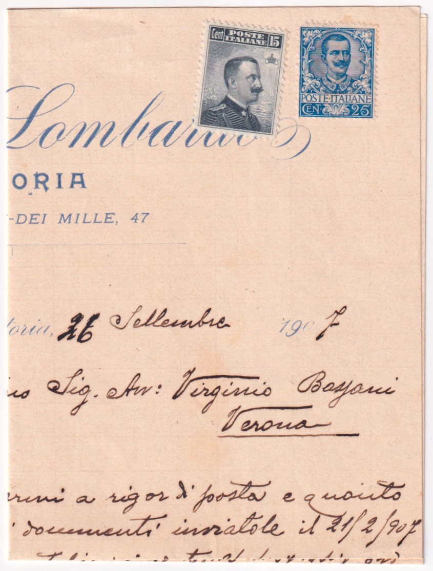 1907-Michetti c.15 e Floreale c.25 nuovi (con gomma parzialmente integra, i francobolli sono applicati solo in un piccolo punto e pertanto calcolati come linguellati) su lettera da utilizzare per la risposta