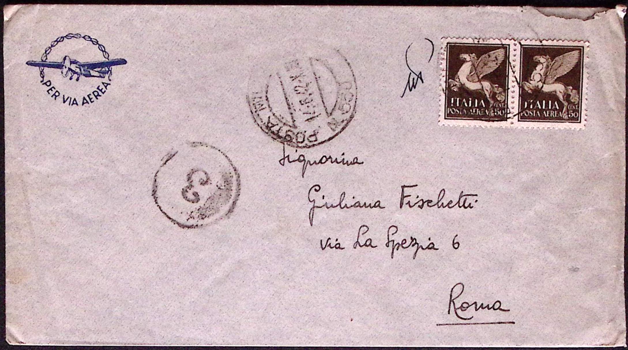 1942-MARIDIFE EGEO BN 300 manoscritto al verso di busta via aerea PM 550 sezione scalpellata (14.6)