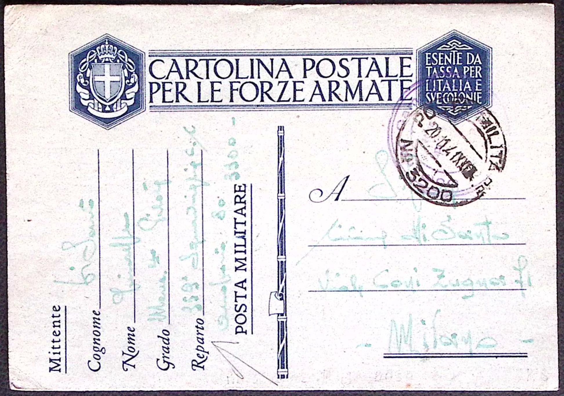 1941-359 SQUADRIGLIA AEROPORTO 80 (dislocato in Russia)manoscritto su cartolina franchigia PM 3200 (20.11)
