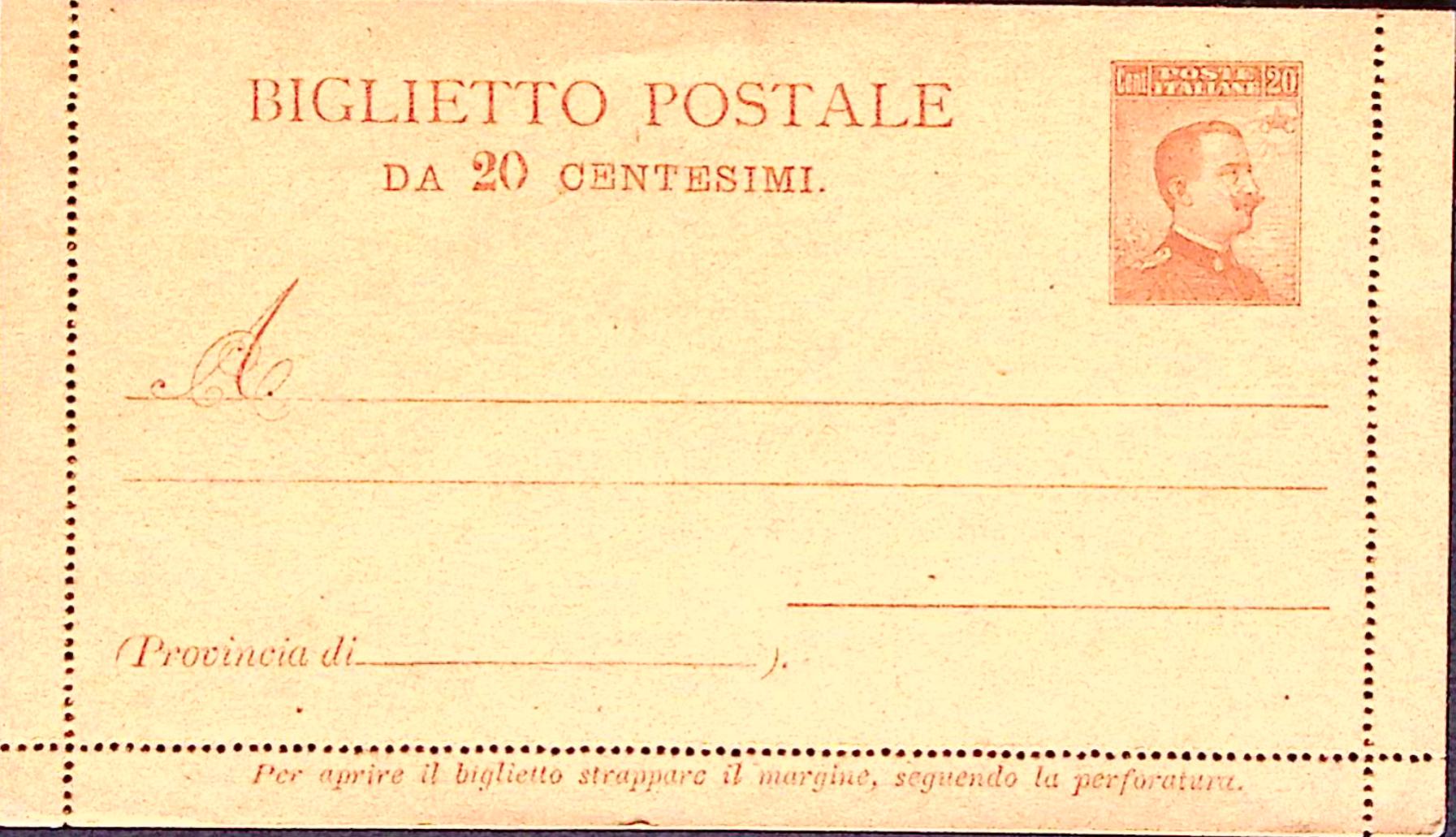 1918-BIGLIETTO POSTALE Effigie a destra c.20 cartoncino giallo nuovo