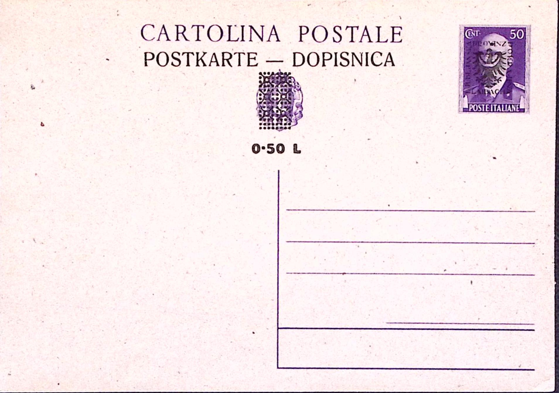 1944-LUBIANA Occupazione tedesca cartolina postale Imperiale soprastampata lire 0,50/c.50 nuova80