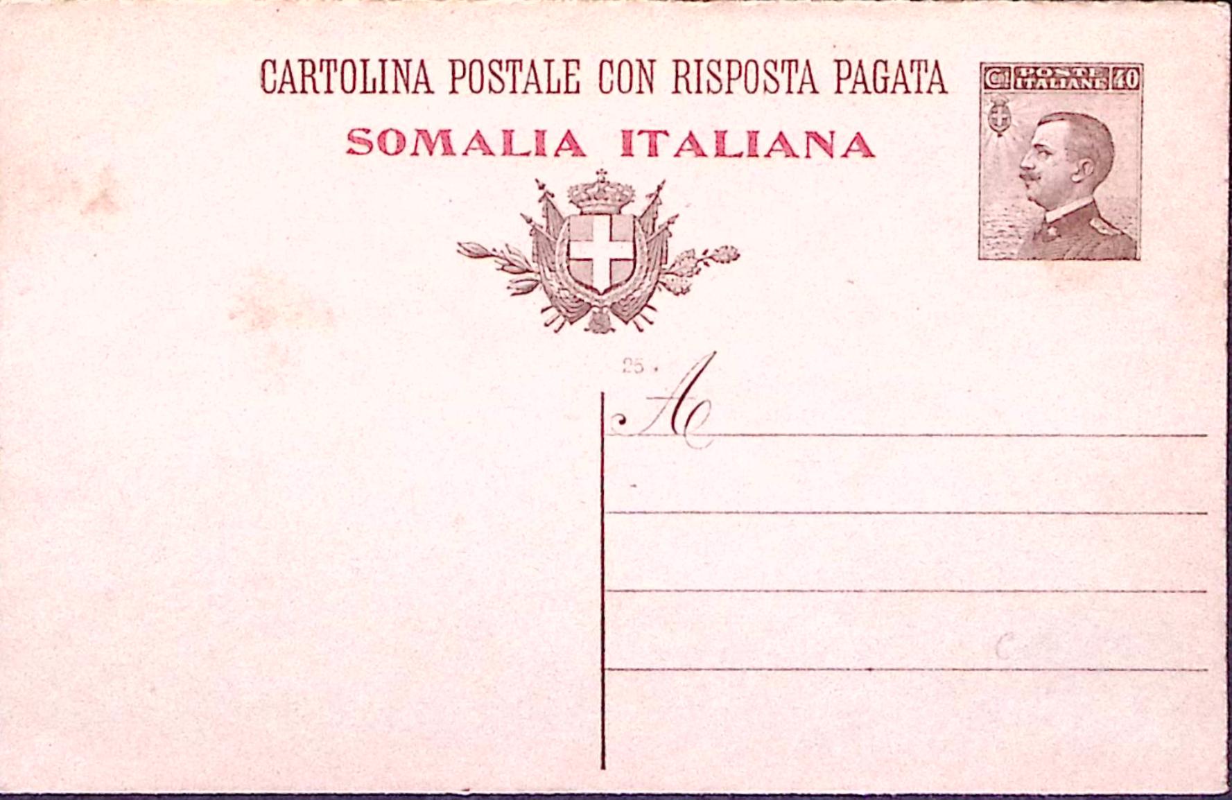 1925-SOMALIA Cartolina postale RP Michetti c.40+40 mill.25 nuova