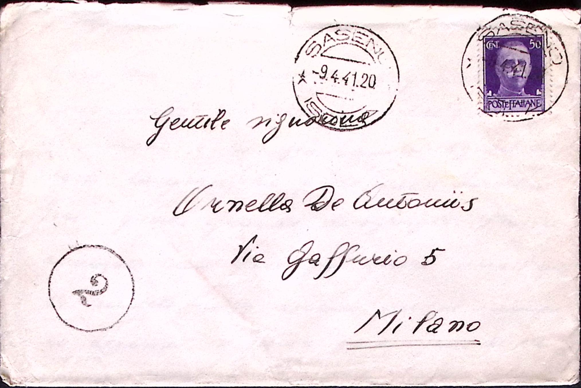 1941-SASENO ISOLA C.2 (9.4) su busta con lettera scritta all'interno