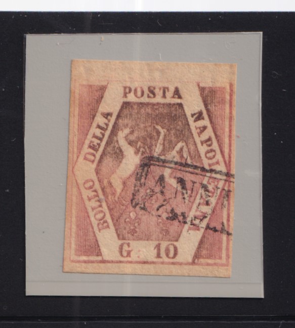 1861-Napoli falso 10 grana rosa brunastro II tipo con trattino all'interno dello "0" di 10 (Sassone F4) ben marginato