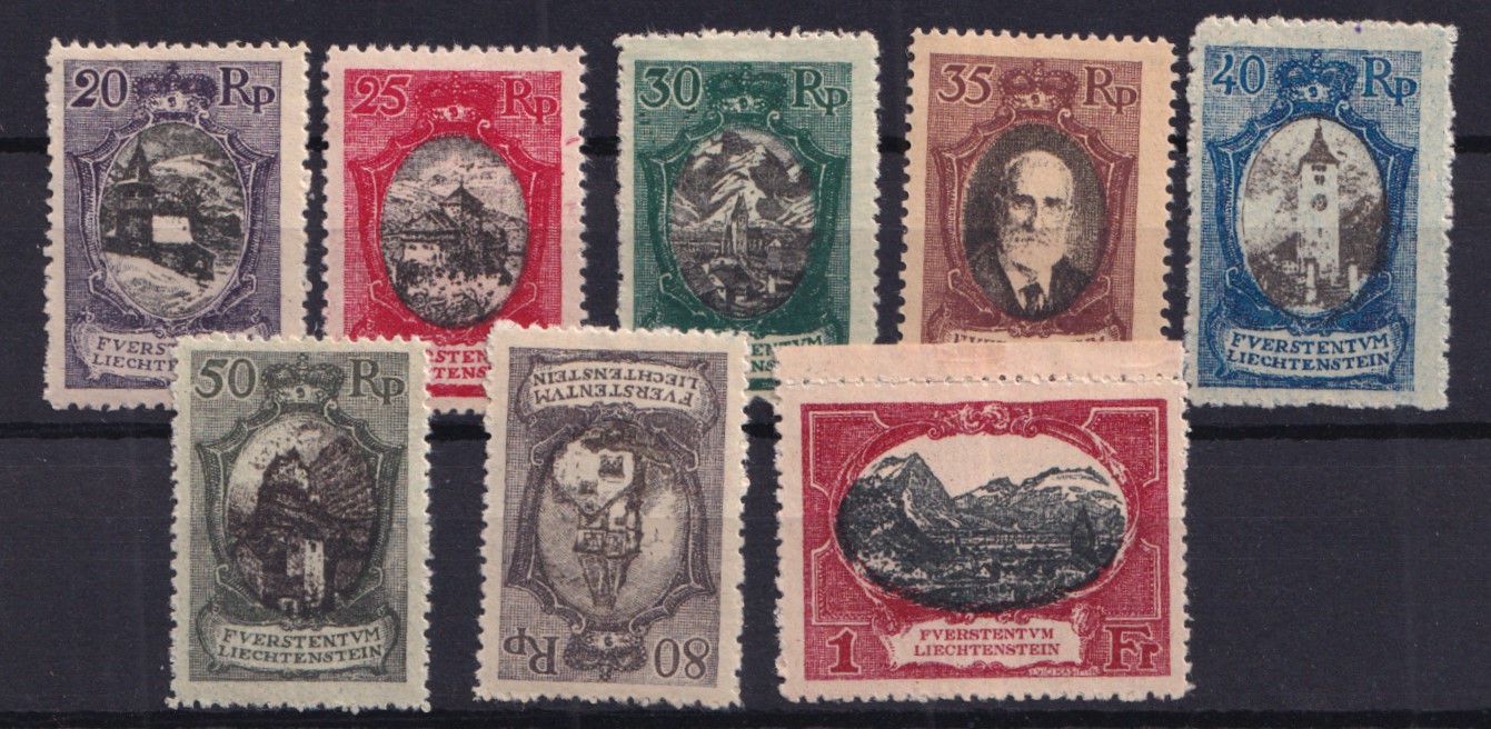 1921 (MLH=*) LIECHTENSTEIN Vedute ed effigie Giovanni II serie completa nuova traccia linguella
