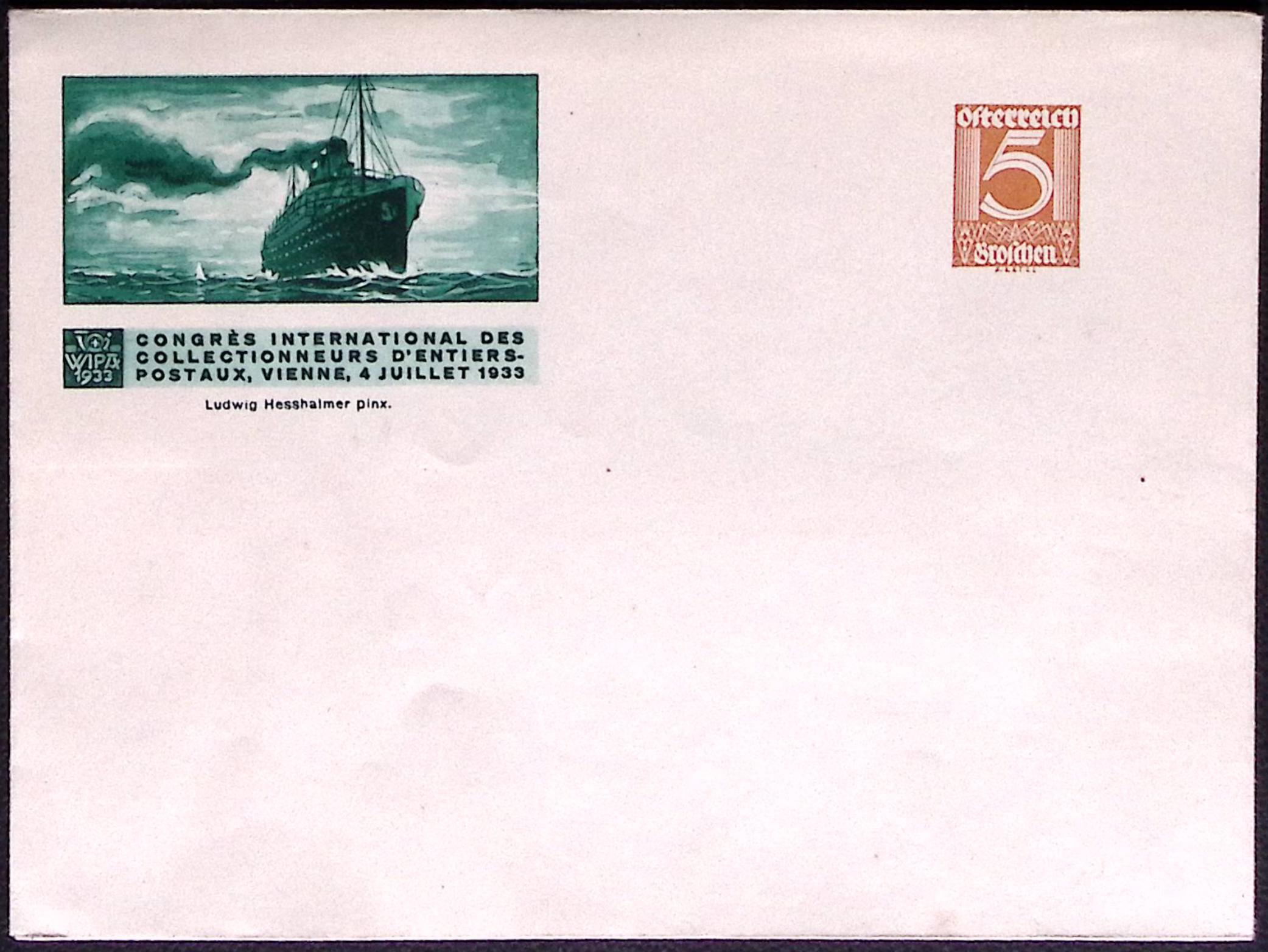 1933-Austria busta postale 5 g. Congres International des collectionneurs d'entiers postaux Vienne 4.7