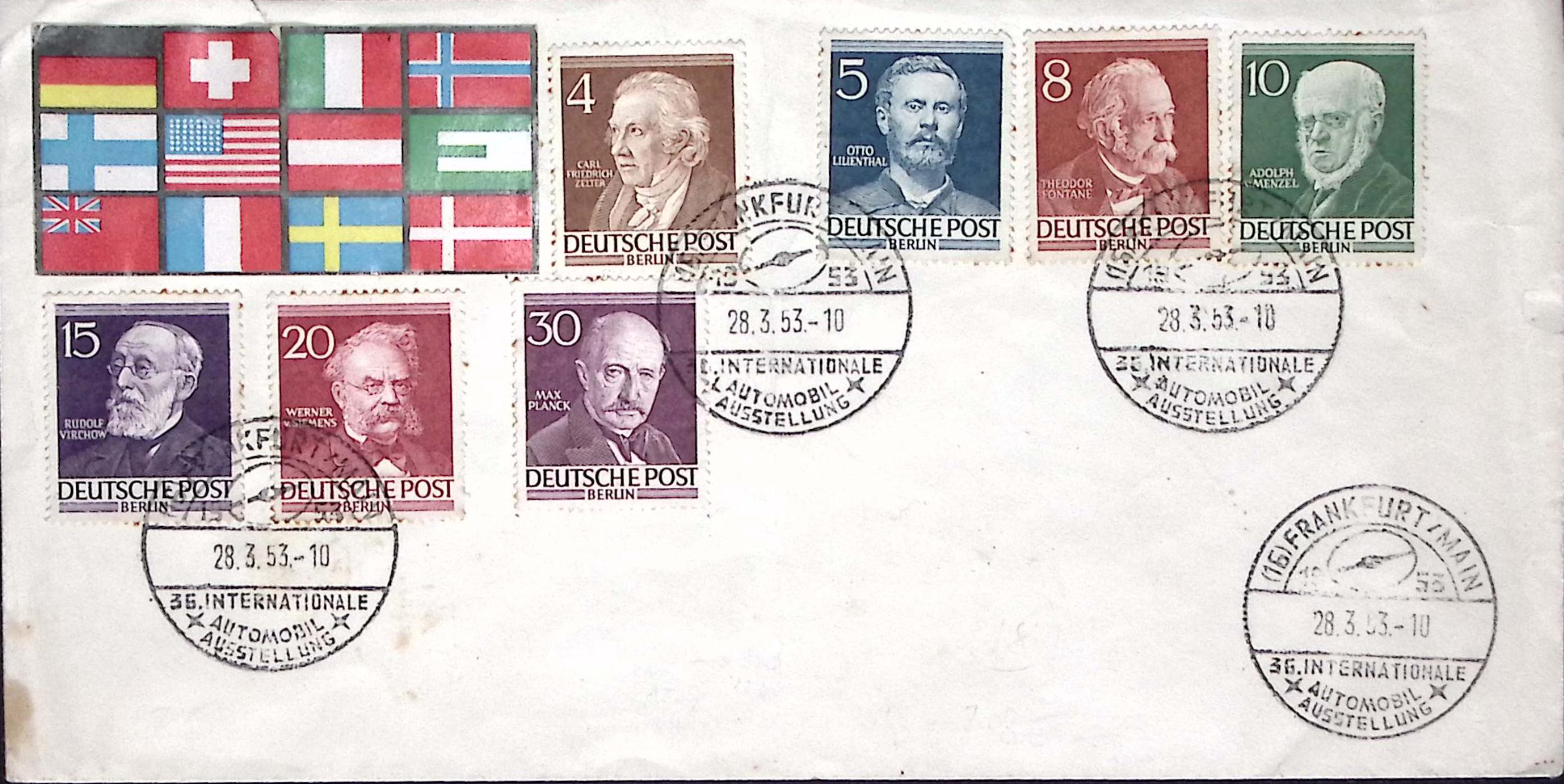 1953-Germania Berlino affrancatura varia annullo Frankfurt Internationale Automobil Ausstellung