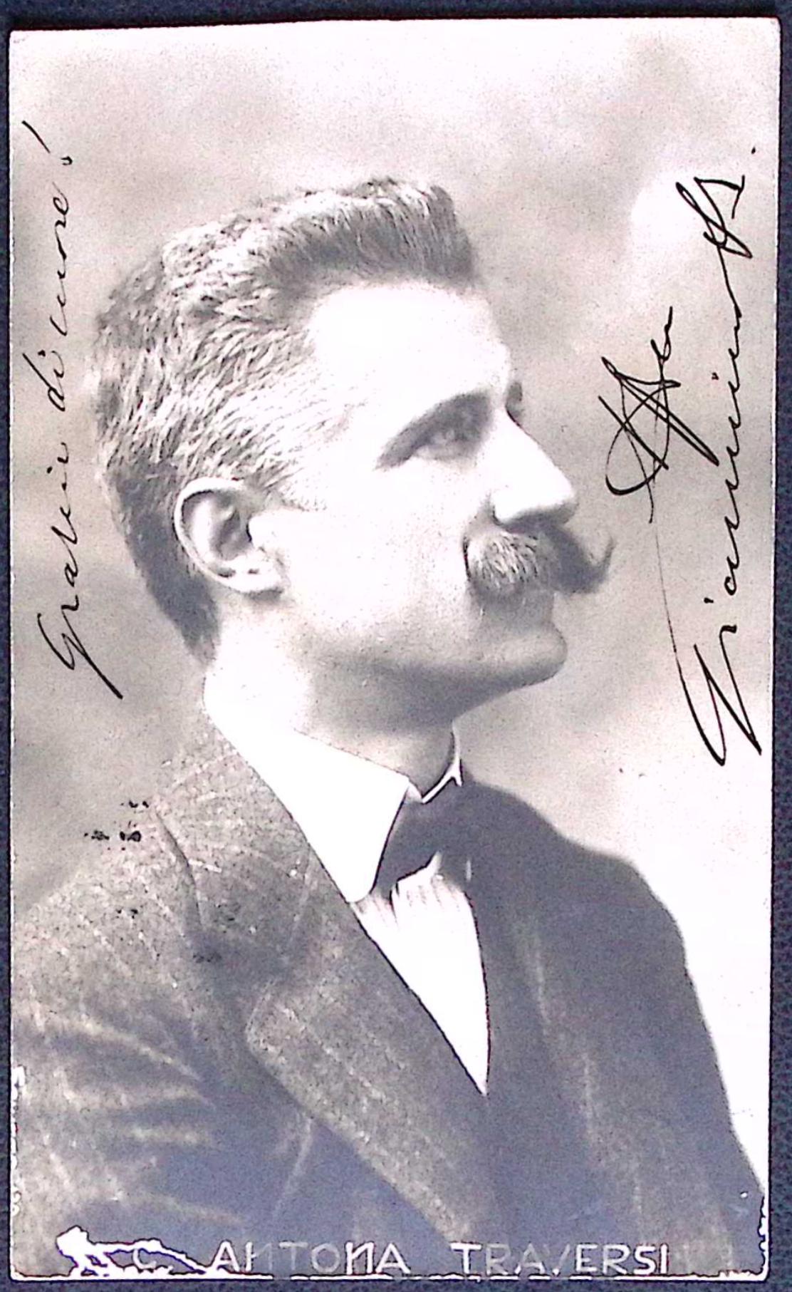 1908-cartolina foto con firma autografa originale di Antona Traversi commediografo