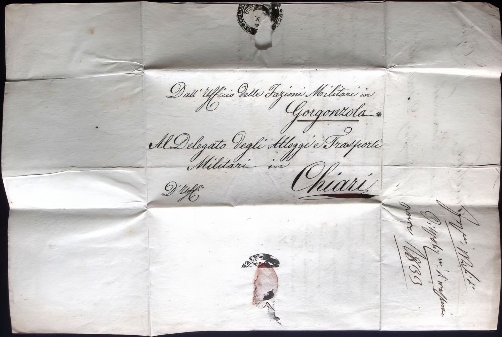1833-Chiari piego con testo al delegato degli alloggi e trasporti militari