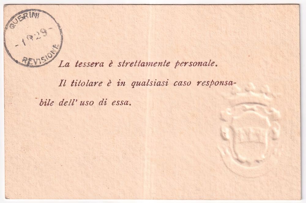 1930-biblioteca Querini Stampalia Venezia tessera per le sale riservate con sigillo a secco