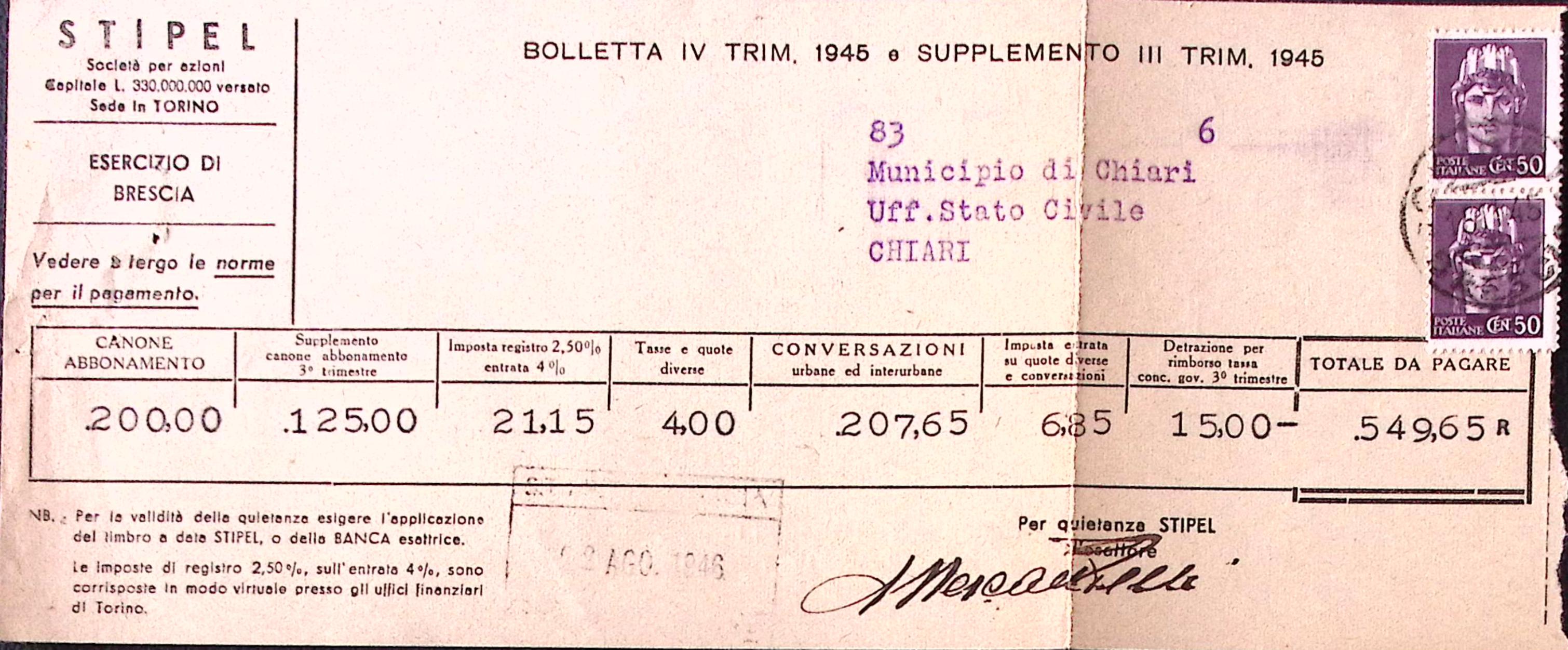 1945-Imperiale Senza Fasci coppia c.50 (538) su fattura (15.11)