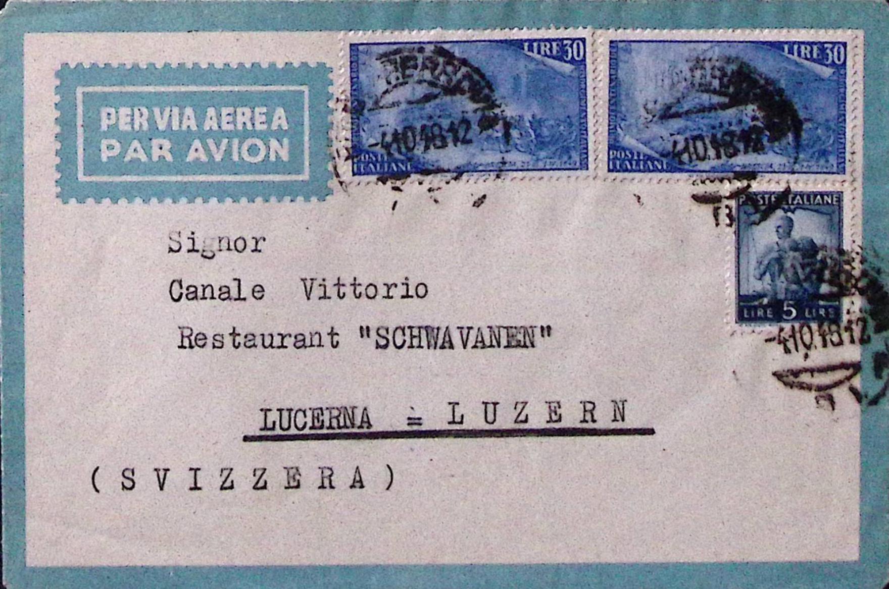1948-Risorgimento coppia lire 30 + Democratica lire 5 su busta Milano (4.10) per la Svizzera