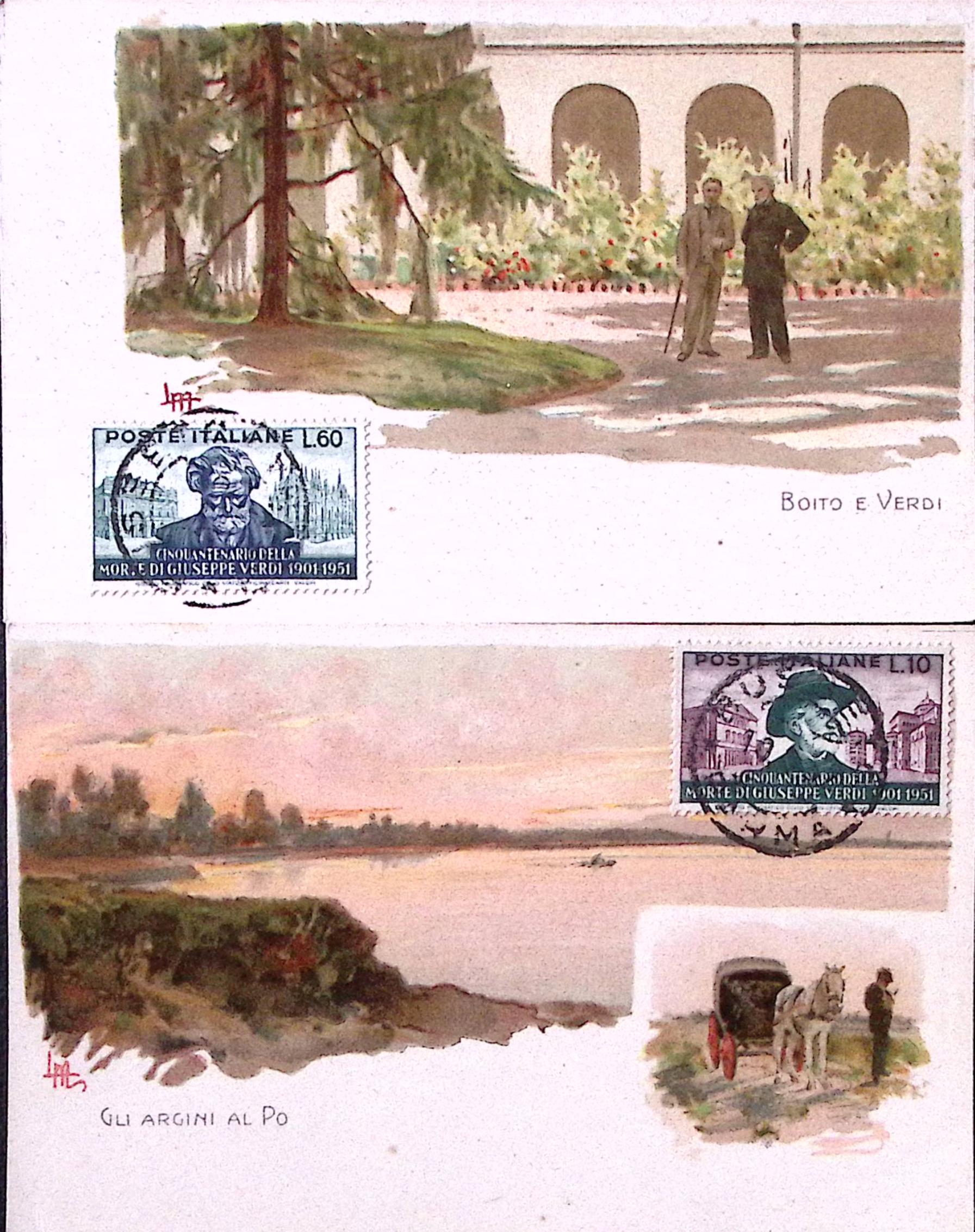 1951-VERDI serie cpl. (677/9) su tre cartoline affrancate lato veduta Busseto (10.1)