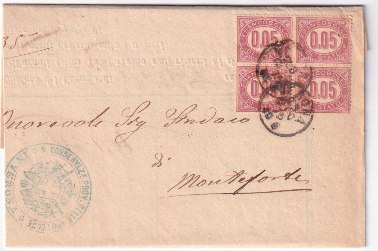 1875-FR.LLI SERVIZIO blocco quattro c.5 (2)dentellatura perfetta su piego Verona (28.12.75)