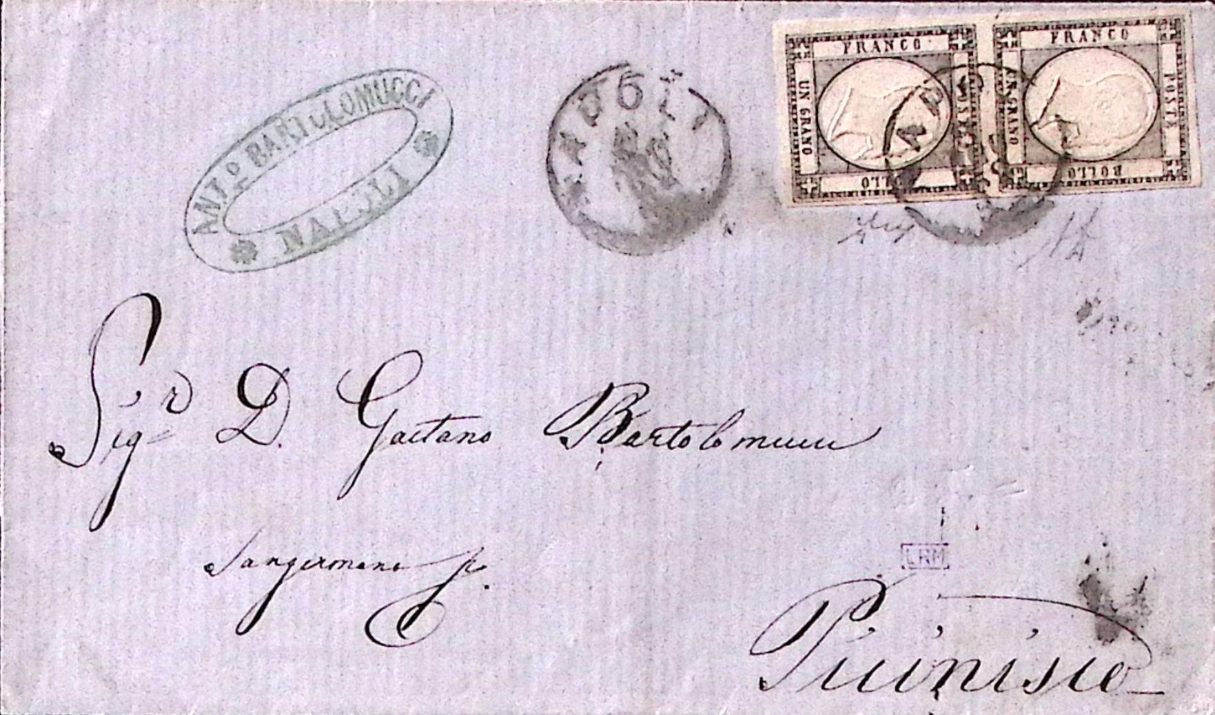 1862-Province Napoletane coppia gr.1 (19) su soprascritta Napoli (9.2.) F.to A Diena + Chiavarello