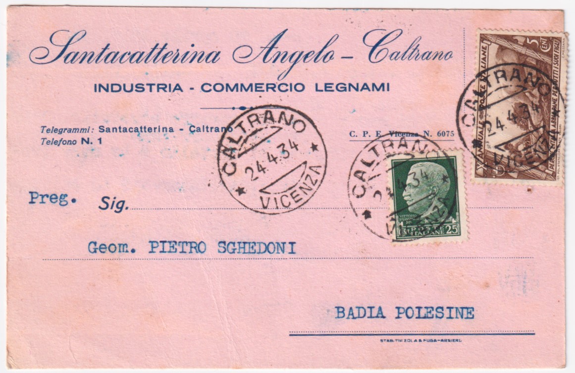 1934-X MARCIA c.5 + Imperiale c.25 (248+325) su cartolina