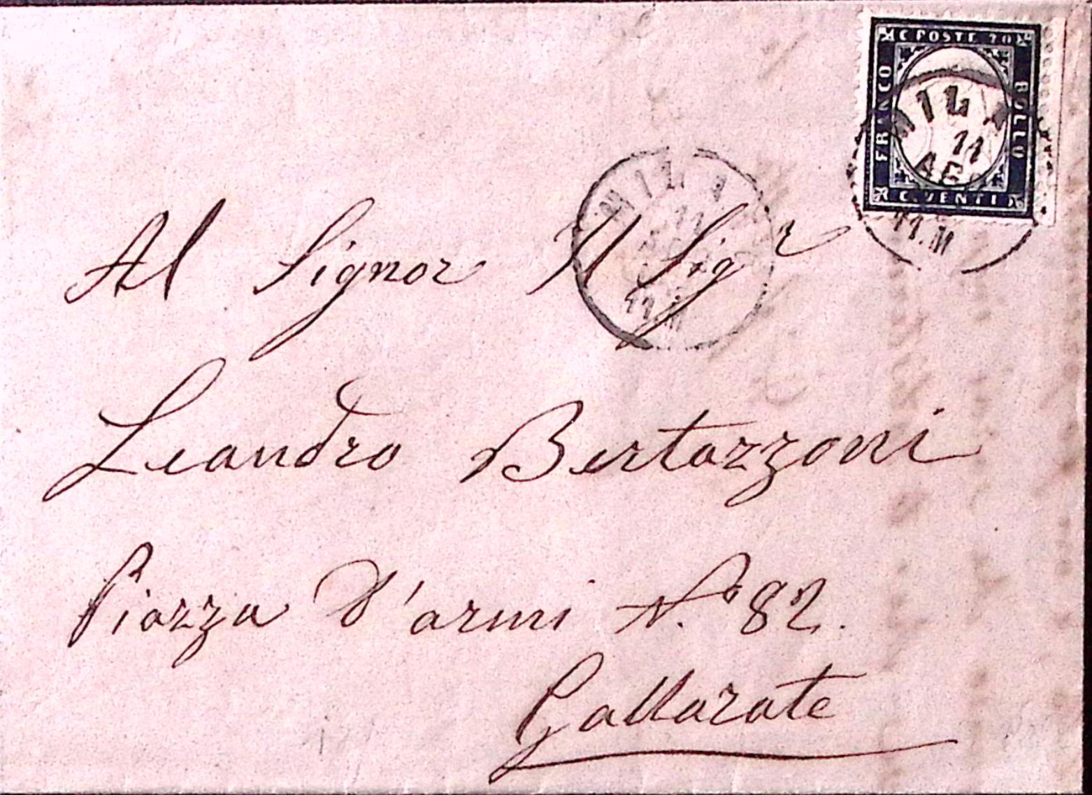 1862-effigie c.20 (7) isolato su lettera completa testo Milano (11.8)