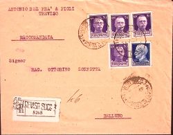 1935-Imperiale c.20, 50 e tre c.10 su piego raccomandato Montecchio Maggiore (11.10)