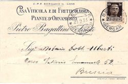 1933-cartolina con intestazione pubblicitaria di Pietro Bagattini Bergamo,annullo di Seriate