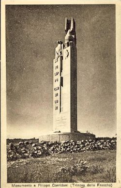 1933-cartolina monumento a Filippo Corridoni (trincea delle Frasche) affrancata 10c.Decennale bollo zona sacra M.S. Michele