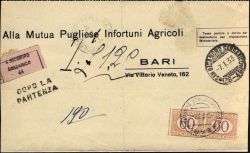 1933-certificato medico raccomandato da S.Nicandro Garganico con tassa a carico del destinatario espletata con coppia segnatasse 60 c.