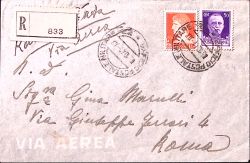 1942-Posta Militare/n.125 C.2 (5.5) su busta via aerea, affrancata Imperiale c.50 + PA coppia c.25