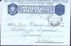 1943-annullo inchiostro violaceo Posta militare n.186 del 2.9 su biglietto postale franchigia